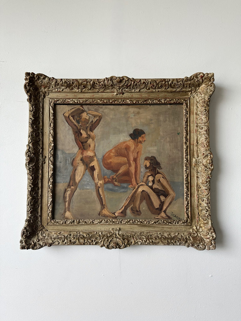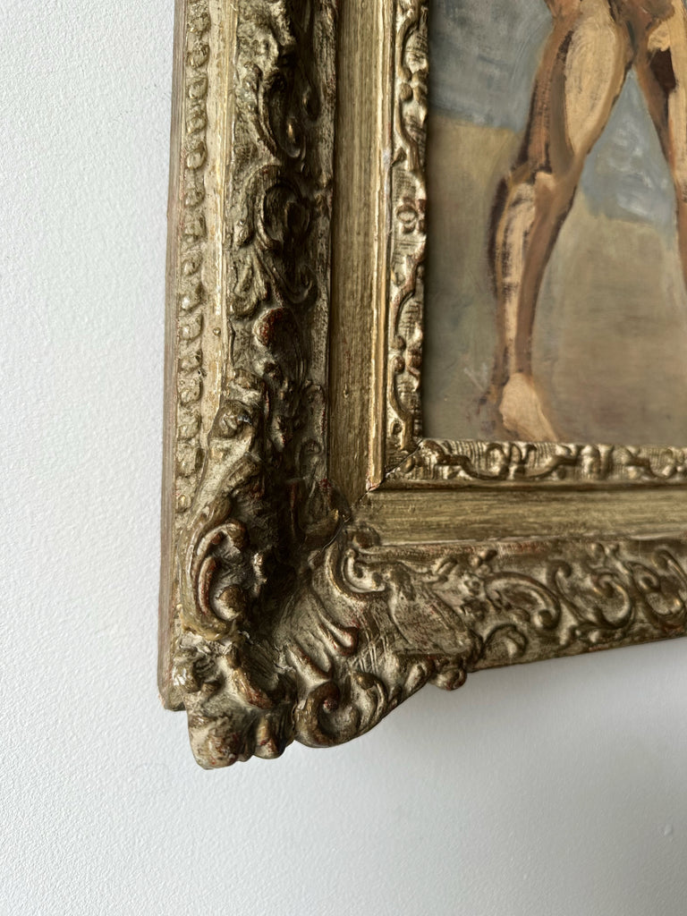 MODERNIST FEMALE NUDE FRAMED OIL PAINTING BY DELANG, 24x23
