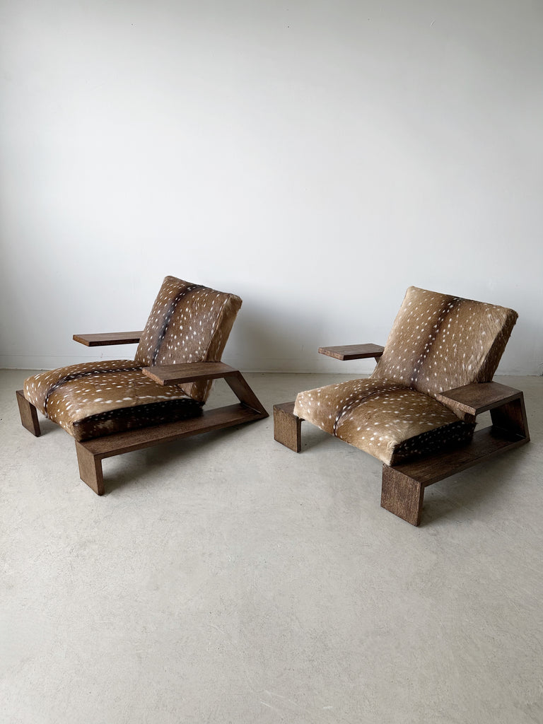 OAK & DEER HIDE ELEPHANT ARMCHAIRS ATTRIBUTED TO JEAN-MICHEL FRANK, 40's